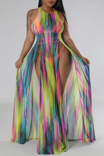Cross Hollow Out Bikini Sets with Cover Up, Deep V High Tummy Control Bathing Suit